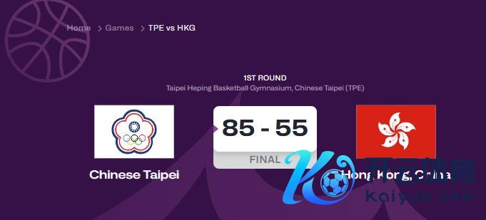 直播吧11月22日讯 FIBA男篮亚洲杯预选赛,中国台北男篮以85-55大捷中国香港男篮,拿到首胜。