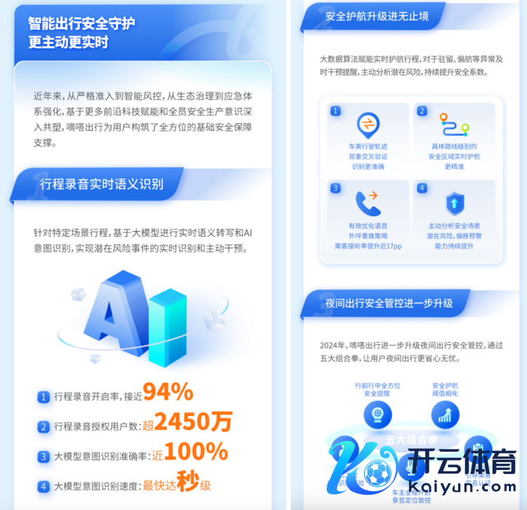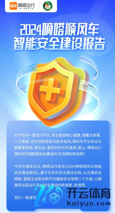 第十三个122“宇宙交通安全日”期间云开体育,嘀嗒出行发布《2024嘀嗒顺风车智能安全建树陈说》,基于嘀嗒出行平台数据统计,从交通安全翻新赋能、智能主动安全和平台基础安全保险三个方面,深刻回想2023~2024年的安全建树推行遵守陶冶,以期展现现时顺风出行平台安全建树的新趋势、新田地。