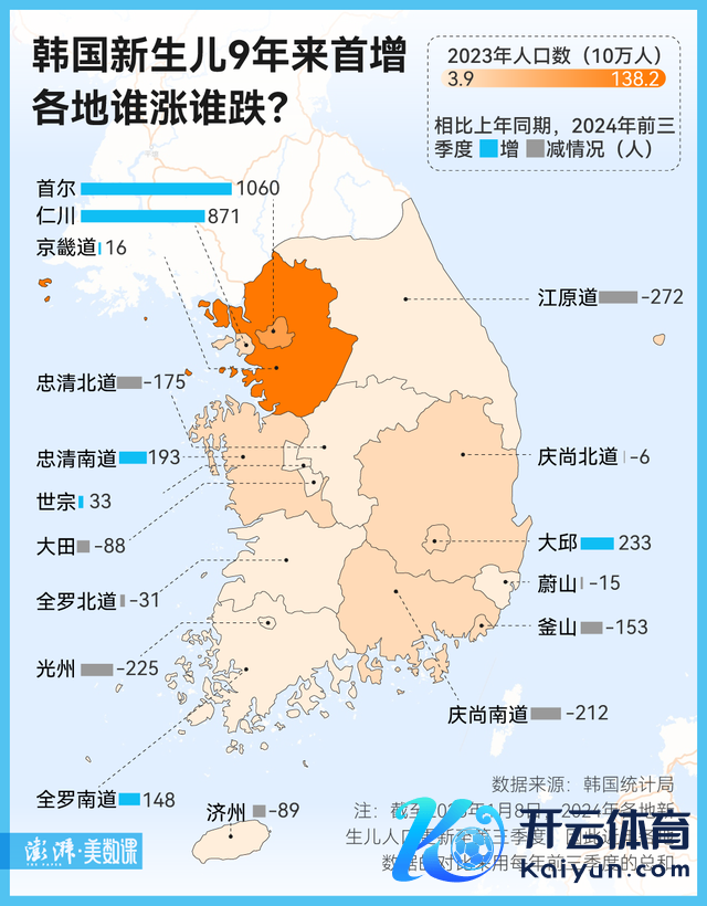 2024 年 6 月刚文书进入“东说念主口蹙迫景况”的韩国,在年末的更生儿数收场了九年以来的初度增长——该国 2024 年更生儿东说念主数为 24.23 万东说念主,比拟 2023 年多了 1.23 万东说念主。