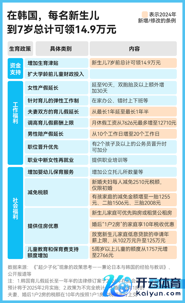 尽管策略成果仍是不昭着,但 2024 年韩国进一步加大了生养方面的补贴与福利。