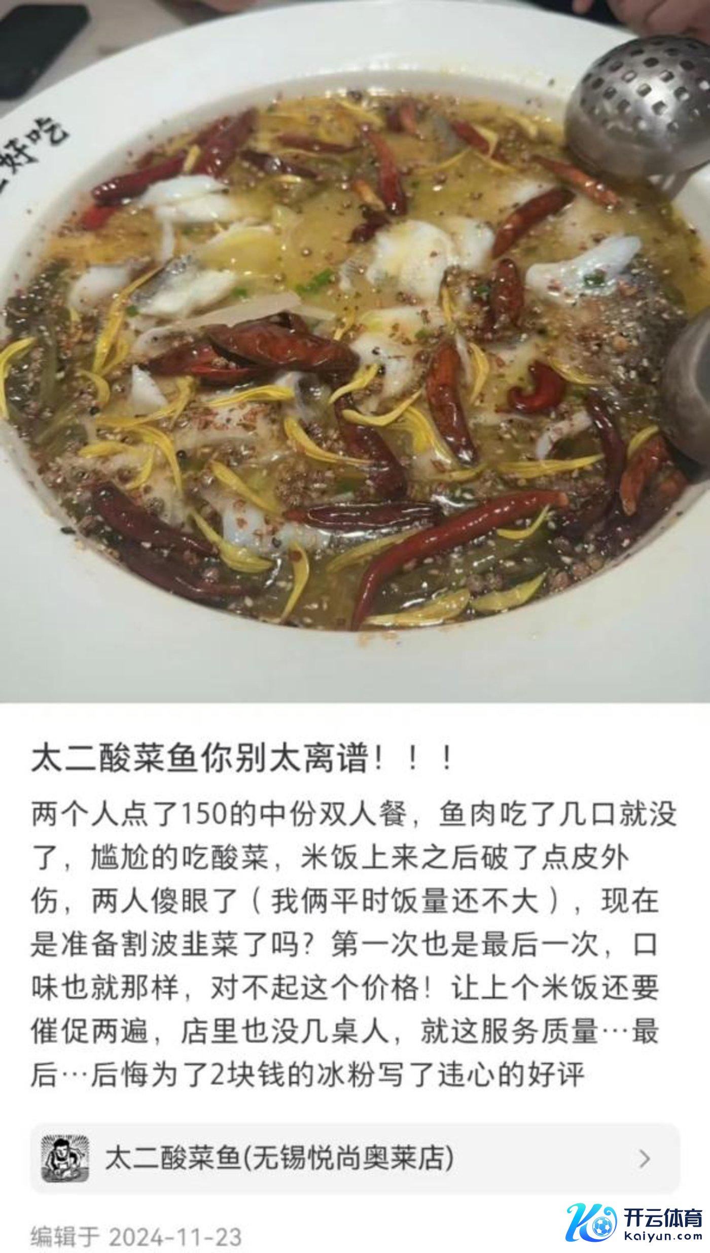 这两年,跟着价钱战愈演愈烈,太二酸菜鱼的口碑也受到了影响,质地和做事似乎也在大打扣头。在应酬平台上,不少消费者响应太二酸菜鱼的份量少,以及做事差。一位小红书网友暗示,150元的双东说念主餐,鱼肉吃了几口就没了。