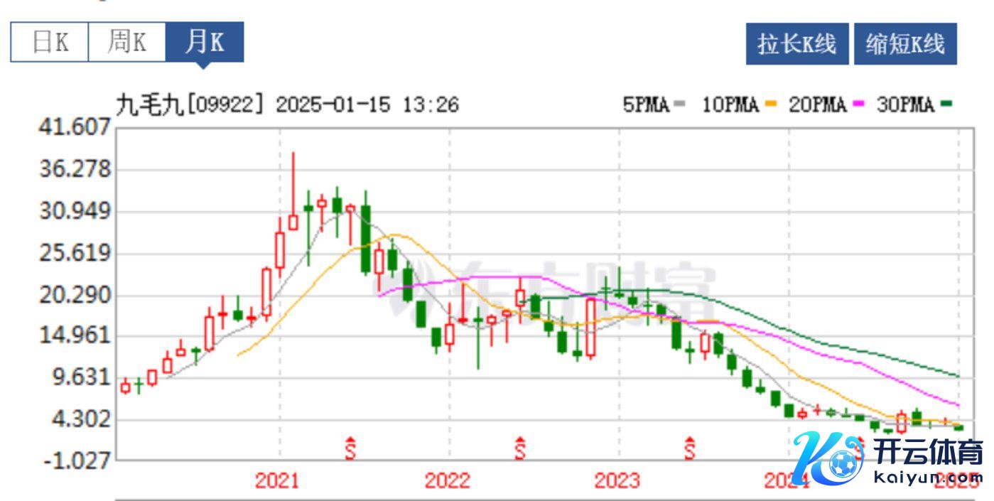 跌跌贬抑,恰是太二酸菜鱼母公司九毛九连年来的信得过写真。插足2025年,短短几个往还日,九毛九股价依然跌近20%(落幕1月15日收盘)。技能拉长到畴昔两年,九毛九的股价依然累计下落跳跃80%。以此来看,老本商场对九毛九的出路已达到很是悲不雅的景况。