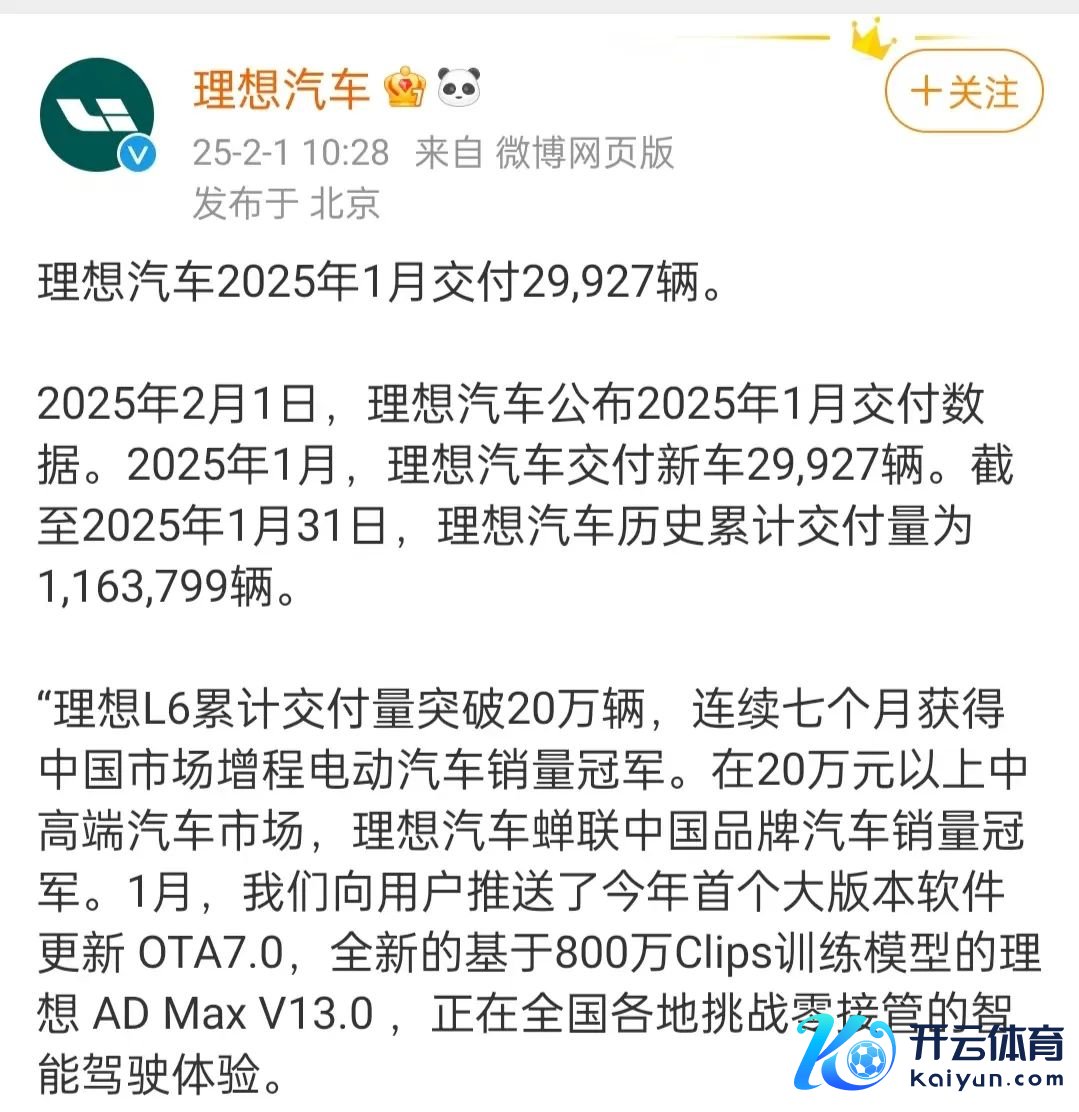 行为2024年新势力“销冠”,理念念汽车在2025年的首月发扬也不失态。1月,理念念汽车托福新车29927辆。适度2025年1月31日,理念念汽车历史累计托福量为116万辆。