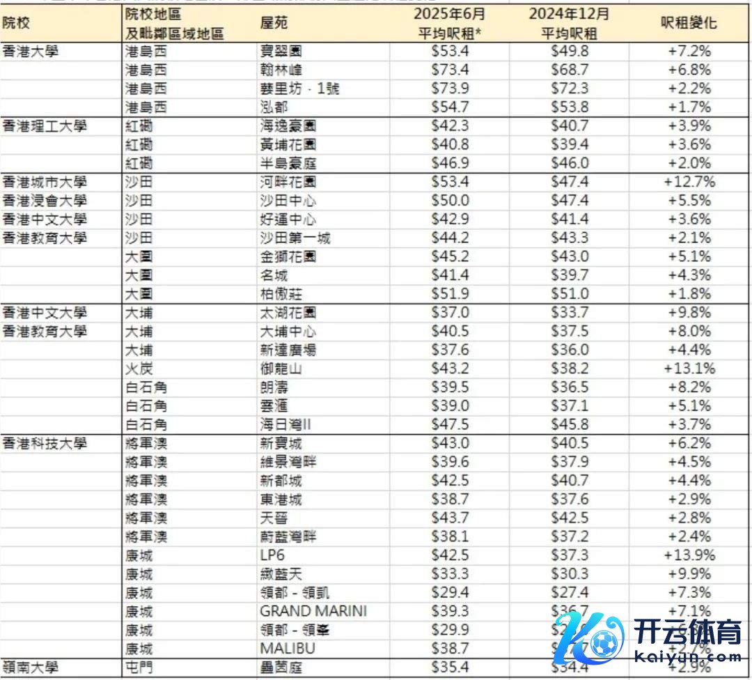 每经记者从香港好意思联物业方面获悉,相较于前年12月份,香港八所公立大学(以下简称“港八大”)近邻受到内地学生心疼的大型社区,平均呎租(即每平时呎的平均月房钱,1平时呎?0.0929平时米)在本年6月均有不同过程高潮。