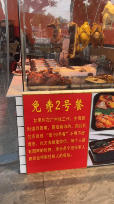 正本,店主黄展护是别称退役军东说念主,早在2016年,当他运行作念餐饮时便防卫到一些糊口不易的东说念主来店里吃其他来宾吃剩的饭菜。他不忍,于是为他们留出一份免费的快餐。